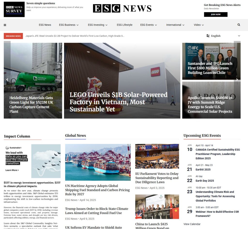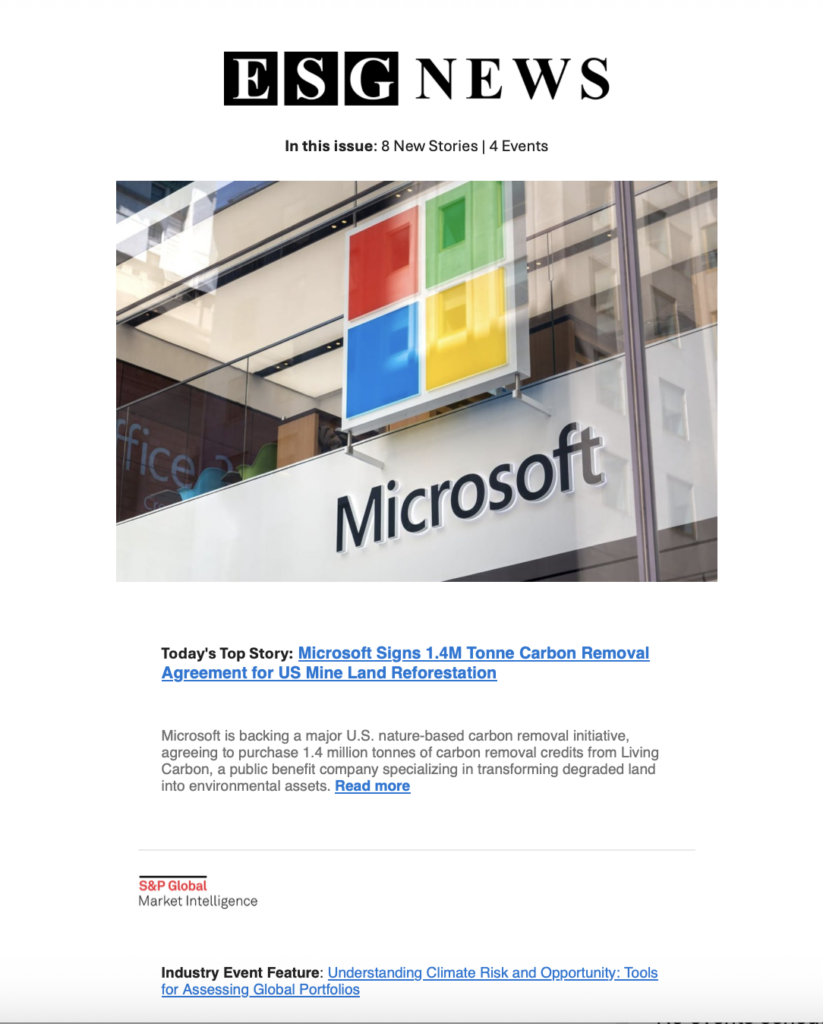 Placement across ESG News' digital channels, esgnews.com, social and ESG / sustainability newsletter