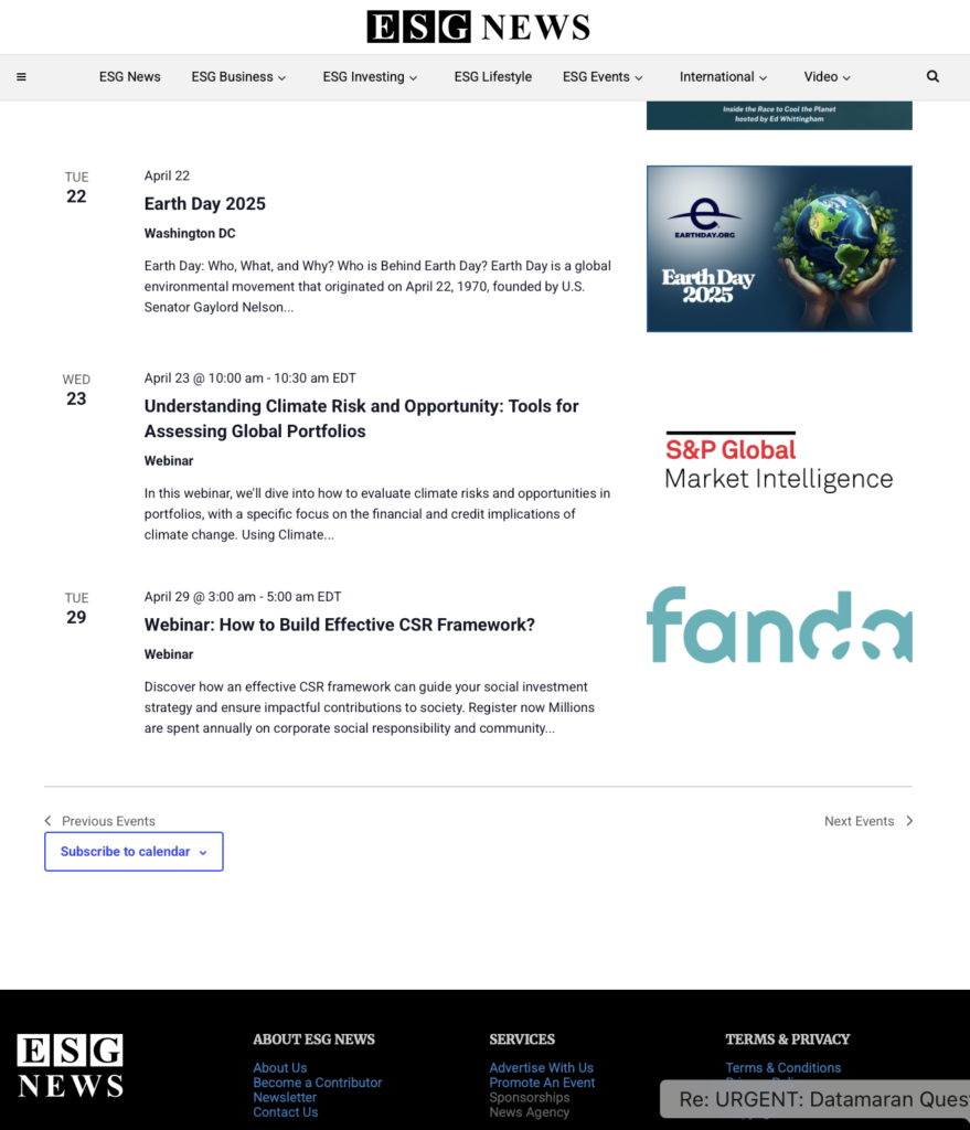 “The numbers you provided are impressive, and we certainly noticed a significant number of registrations coming through ESG News – kudos to your efforts!” – Mominah Kamran, Marketing Coordinator, S&P Global